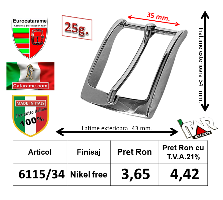 Catarame curele & centuri cu interiorul de 34 mm.