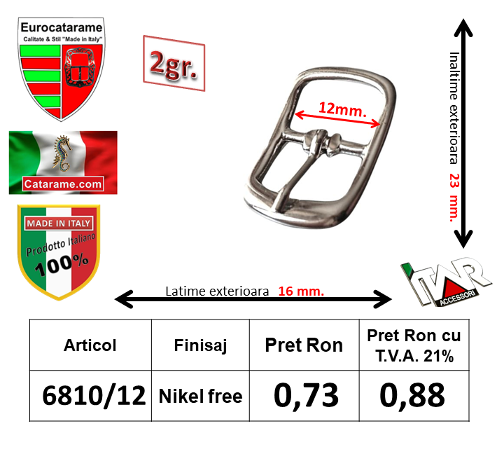 preț cu TVA fără cost transport fără TVA 0,73 RON