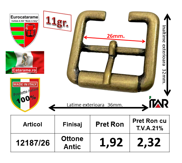Art. 12187/26mm. Ottone Antic - Numai cu precomanda, cantitatea minima 500 buc.